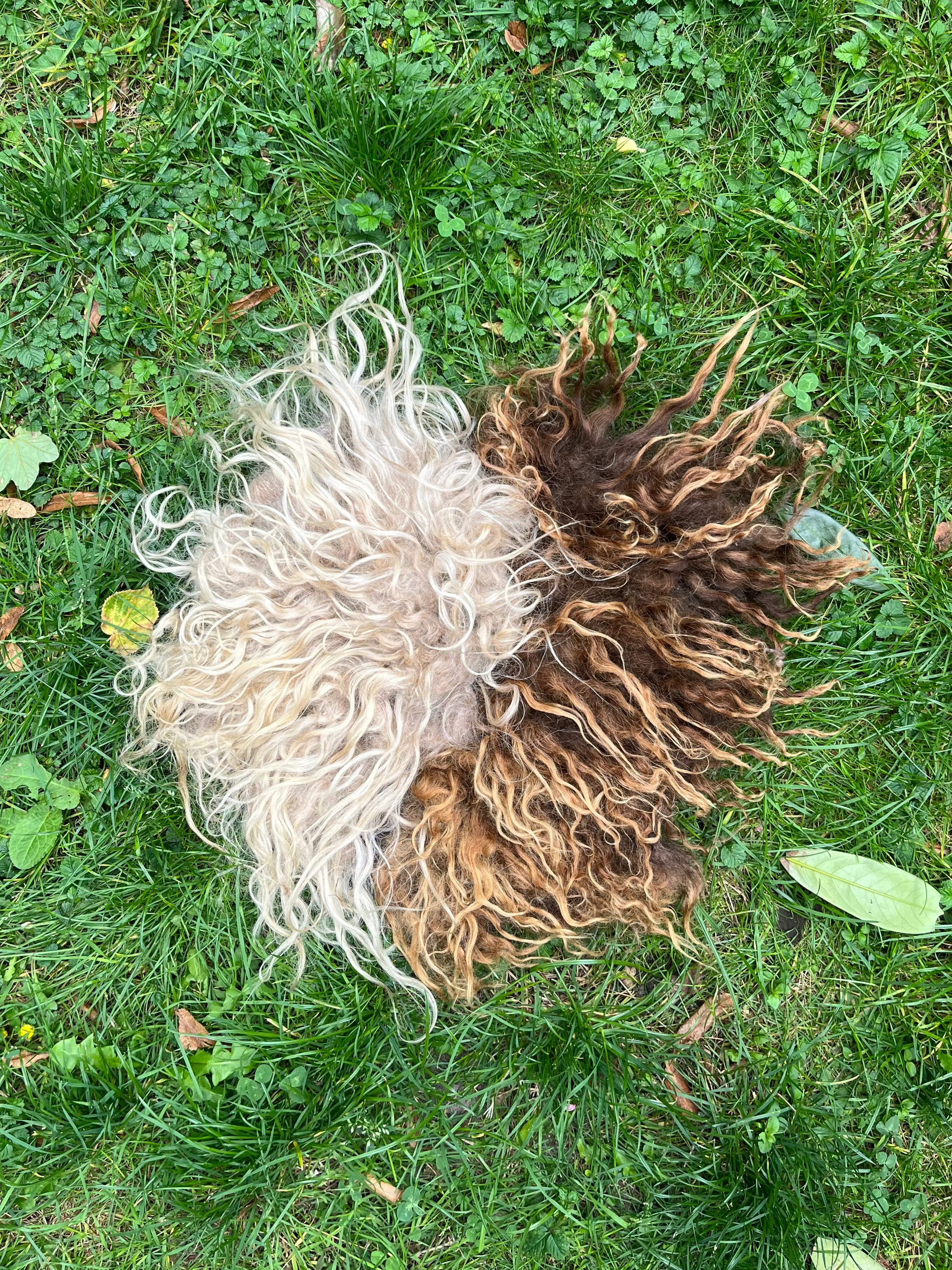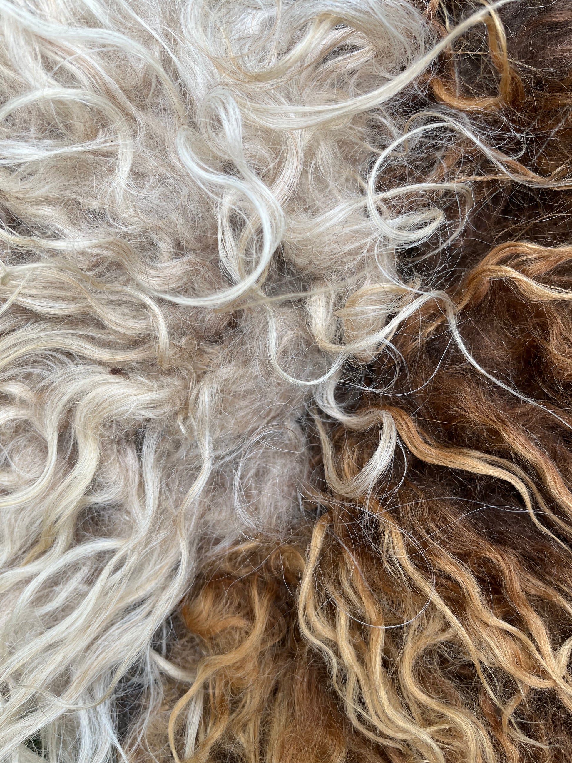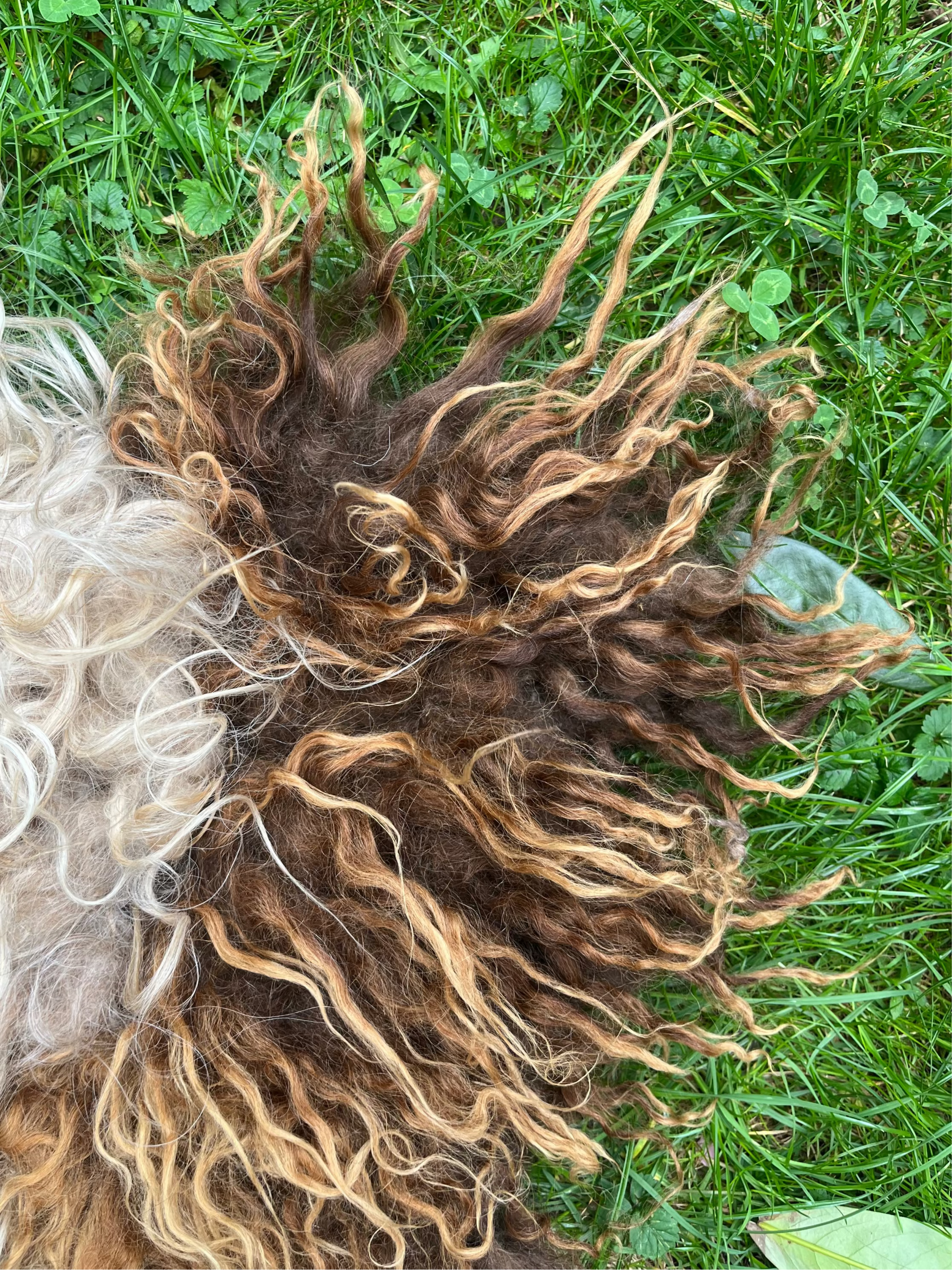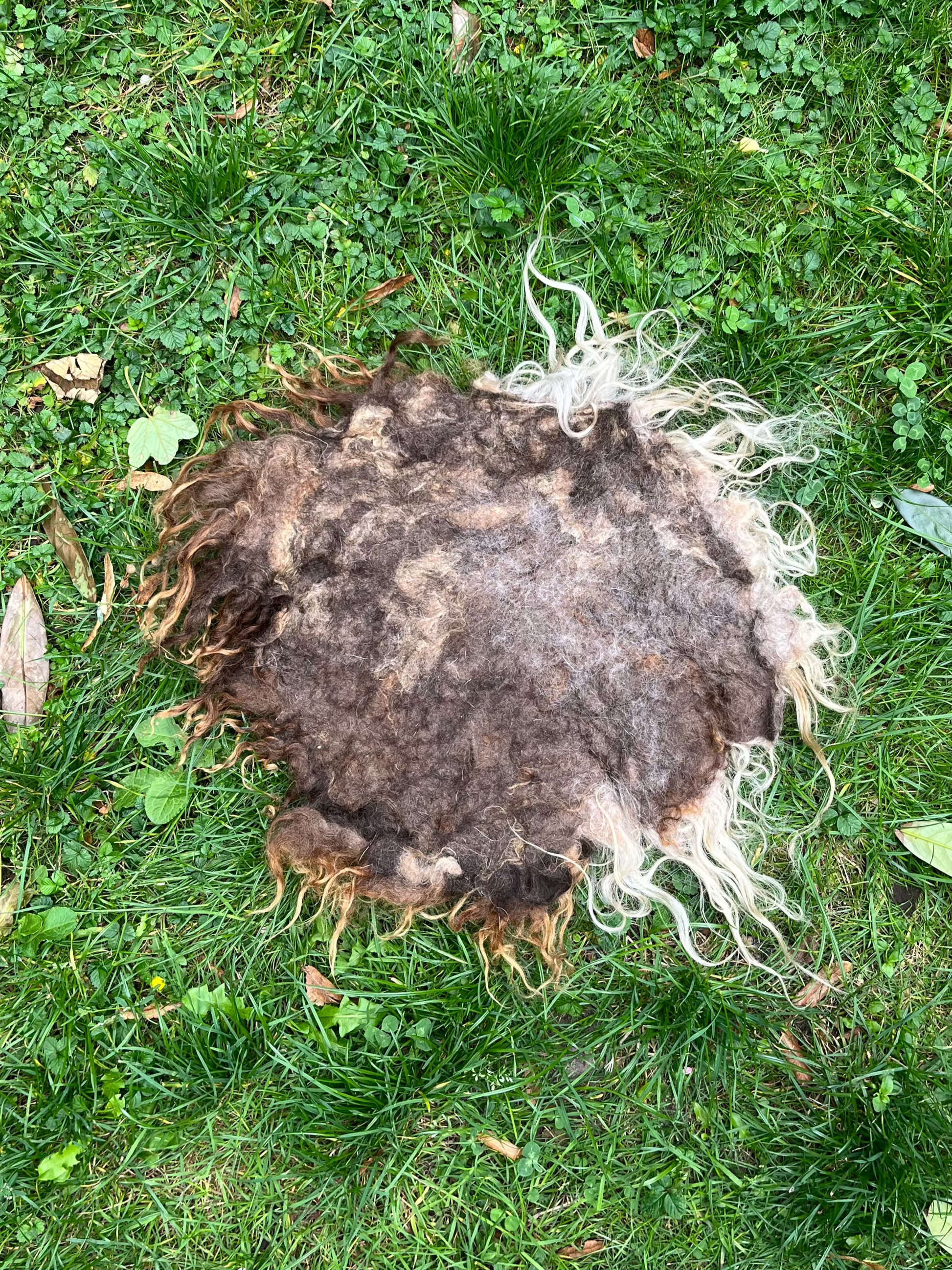Vådfiltet siddepude i beige og brun spælsau uld fra Lystbækgård. Siddepuden er idéel til udendørs brug og er let at rengøre. De filtede siddepuder er et fantastisk alternativ til skind.