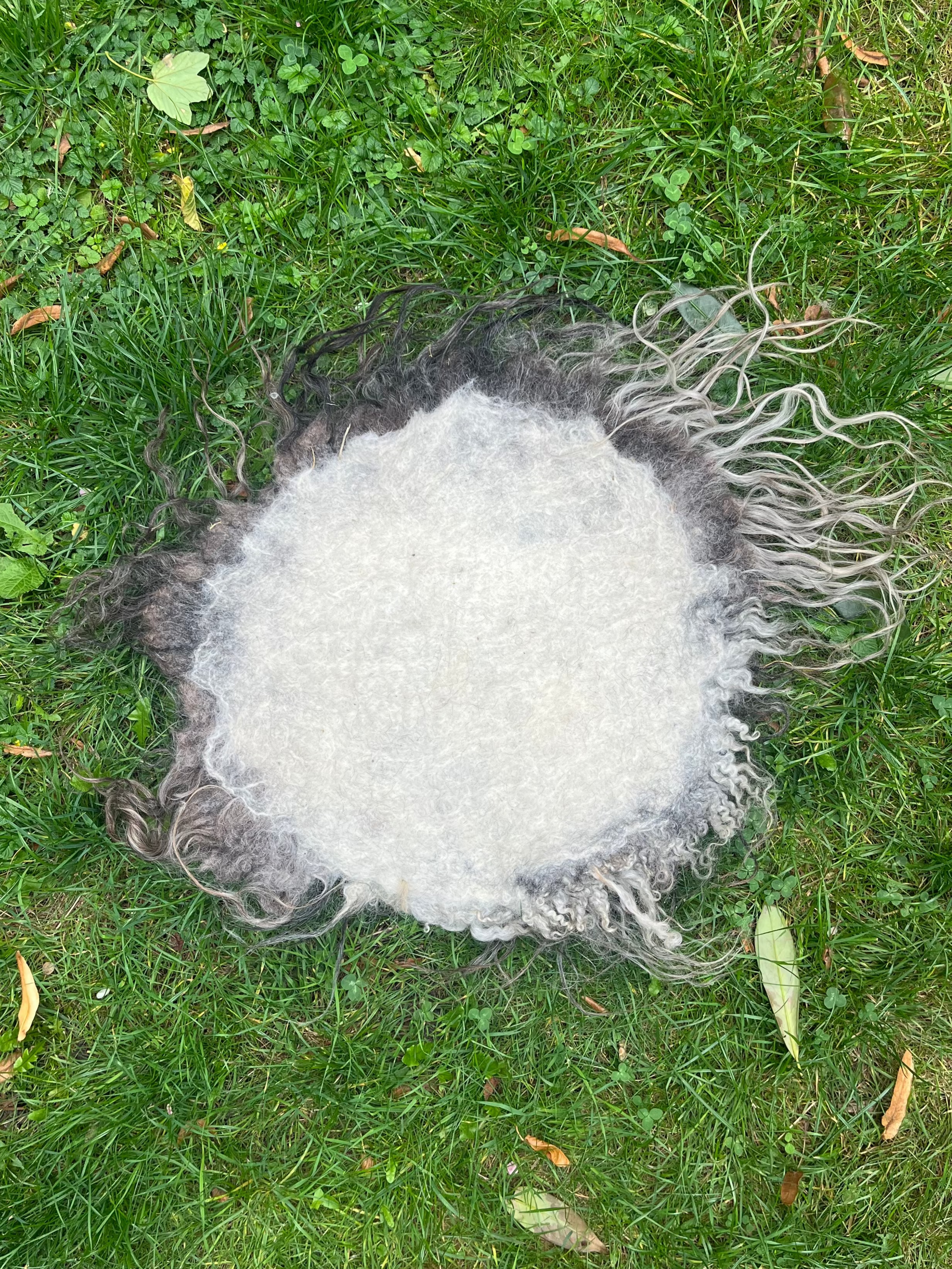 Vådfiltet siddepude i gråbrun spælsau uld fra Lystbækgård. Siddepuden er idéel til udendørs brug og er let at rengøre. De filtede siddepuder er et fantastisk alternativ til skind.